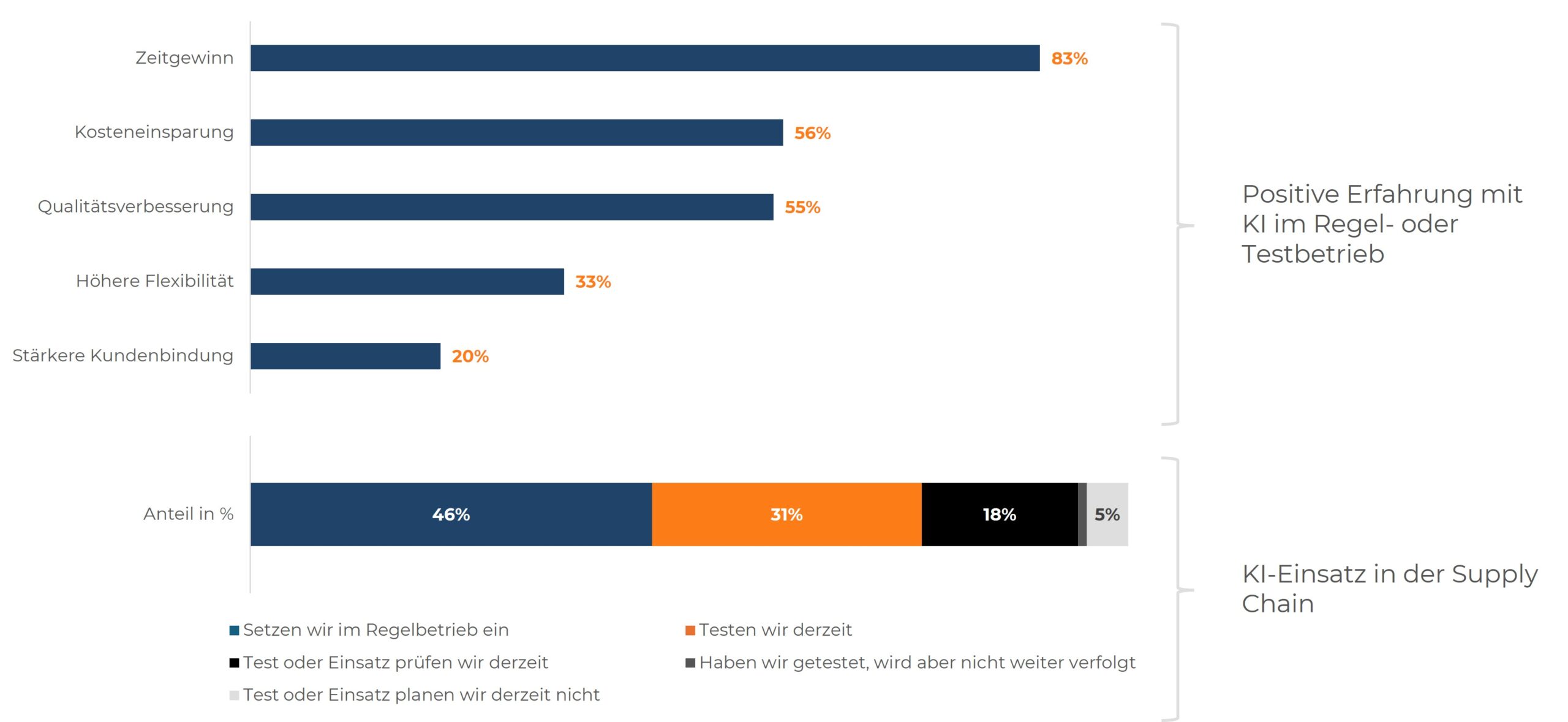 Das deckt sich mit dem allgemeinen Forschungsstand. Bestandsoptimierung und Demand Forecasting ist eines der reifsten KI-Anwendungsfelder, weil historische Daten meist vorhanden sind und der Nutzen schnell messbar wird.